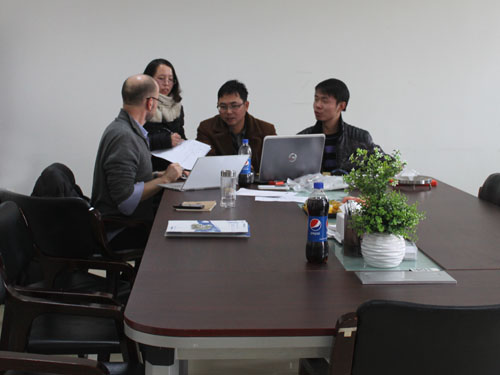 芝加哥客戶于2013年在我公司購買一臺非標夾層鍋,由于業務發展需要,2015年1月30日,該客戶再次來我公司,參觀工廠的實際生產,并與銷售員和技術工程師進行球形鍋具體細節的洽談。