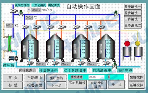 我公司先后派出1名程序員、3名工程師協同施工人員趕赴申美飲料食品有限公司施工,經過兩個多月的陸續改造,終于完成對申美公司CIP清洗系統的改造,經調試后合格并投入使用。該全自動CIP清洗系統運行至今3個多月,一切正常。